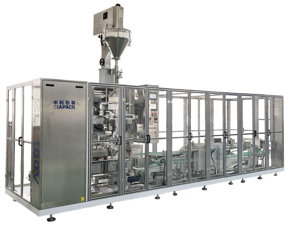 Оваа машина вклучува еден комплет ZL520 машина за пакување и запечатување вертикални кеси. еден сет ZL2000 мерна машина со шнекер, еден комплет ZL100V машина за пакување со една вакуумска комора и еден сет излезен транспортер. Оваа машина широко се користи за пакување хемикалии во аптеките за храна и други производи во прашок или мали гранули. Како кафе во прав, квасец во прав пченично брашно и така натаму. Целата машина го усвојува внатрешното пумпање во вакумирање на производот. долг рок на траење.