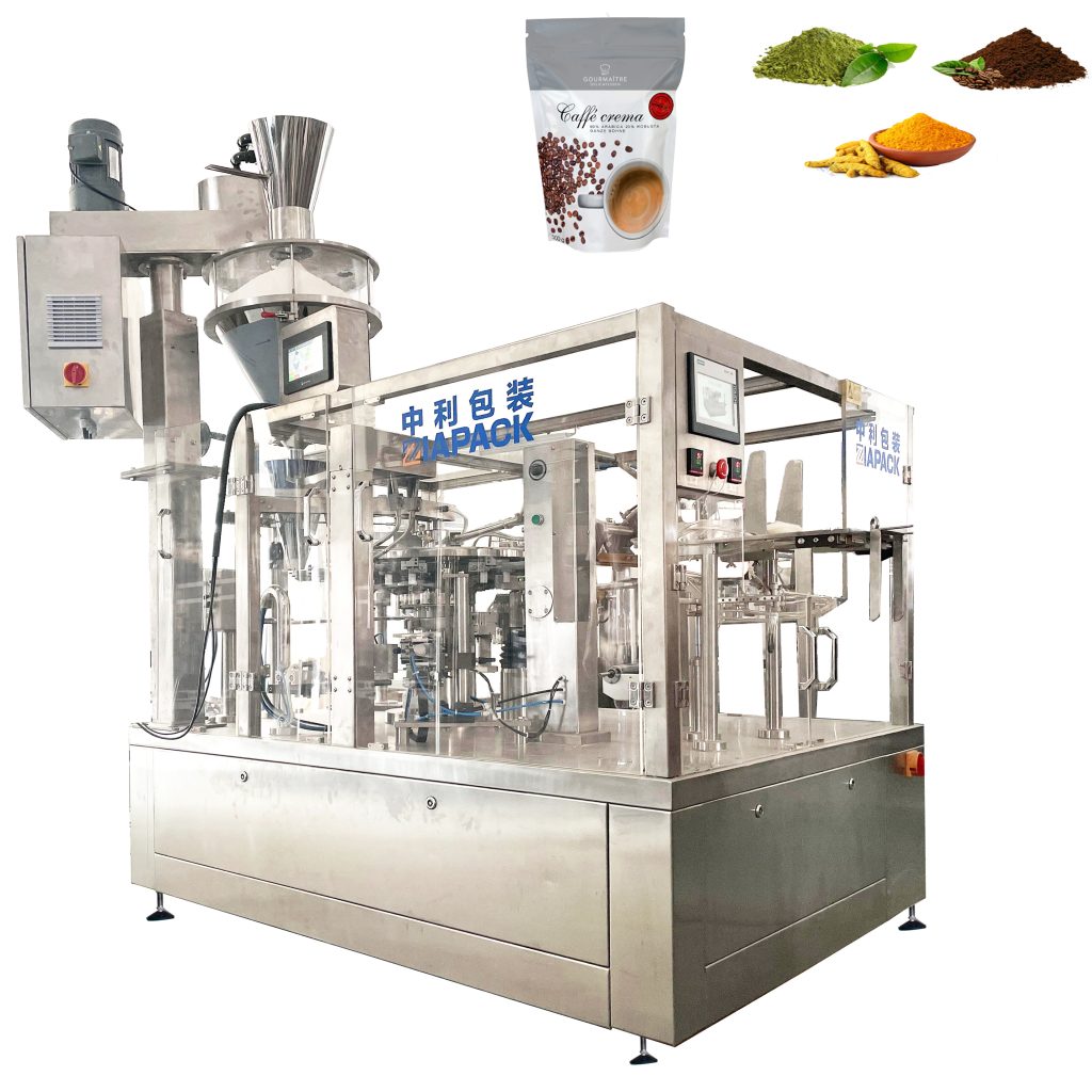 Ротари торба-дадена машина за пакување со различно дозирање (како што се мулти глава, филер за полнење, течен додатен материјал итн.), Може да биде погоден за автоматско пакување за гранули, прав, течност, паста и сл. Различни видови на rpoduct со преградна ташна, рамна вреќа и и така натаму.