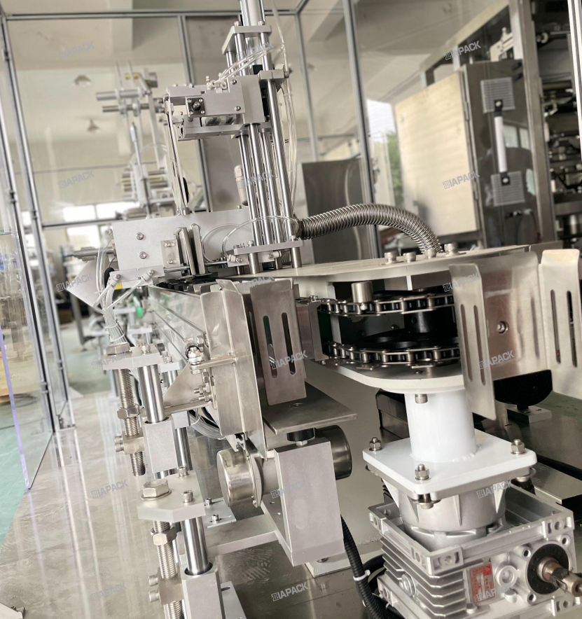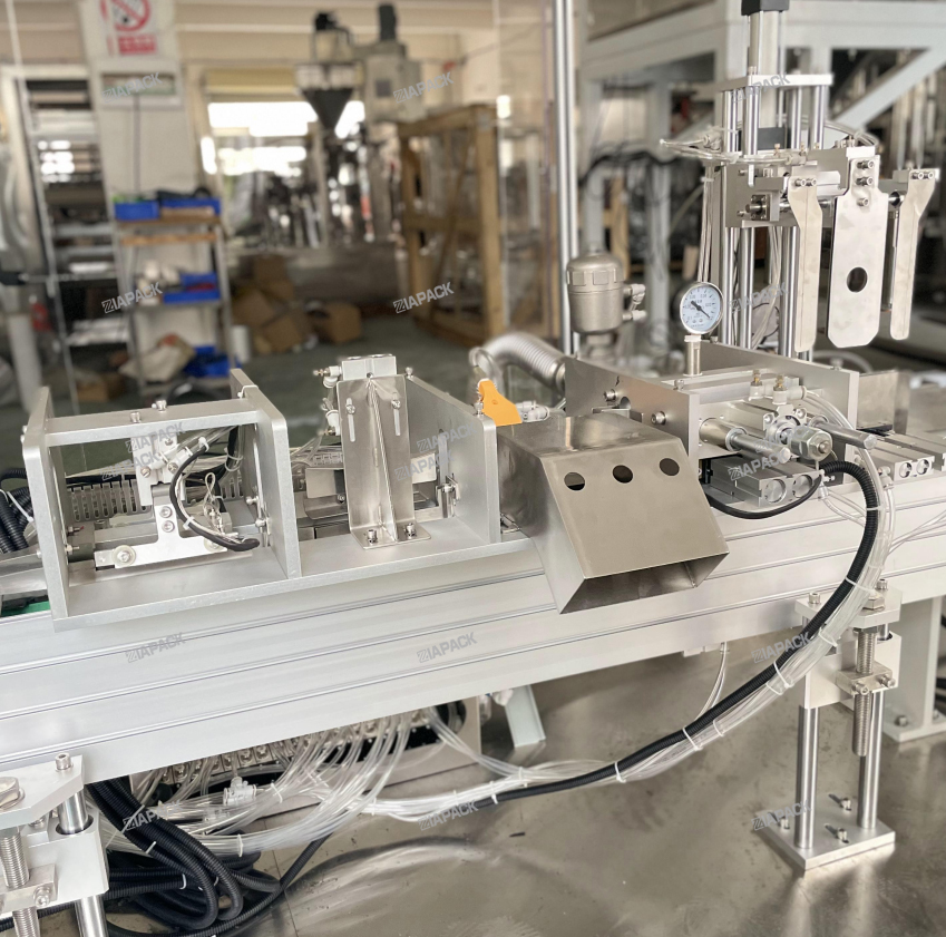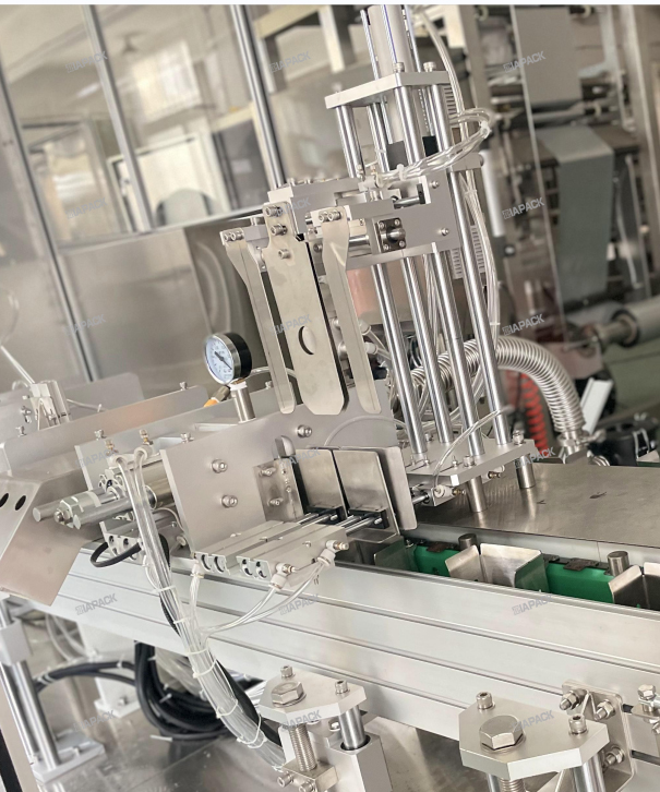 Оваа машина е специјален дизајн за изработка на торбичка со горната етикета. Откако ќе се падне целосната торба со производот на оваа машина. SUS304 .PLC и екран на допир усвоени од брендот Siemens .И пневматските делови го прифаќаат брендот SMC .Главните електрични компоненти ги прифаќаат брендовите Omron и Schneider. Оваа машина работи со автоматска машина за пакување за да го достигне етикетирањето на готовата кеса. Оваа машина може автоматски да ја достигне функцијата на етикетата одвоена ,Испраќање етикета .Детектор за етикети и притискање на етикетата .