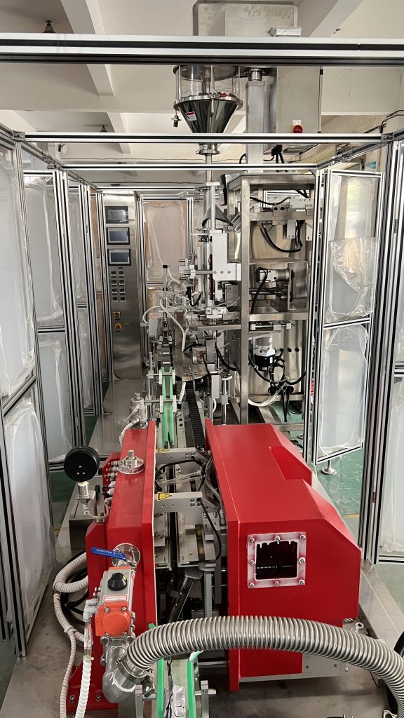 Нашиот клиент од Иран нарача еден комплет автоматска машина за пакување со вакуумски кеси од тули за полнење за 250 грама кафе во прав. И следете ги барањата на клиентот што ја обоивме вакуумската комора да биде црвена боја како предупредување.