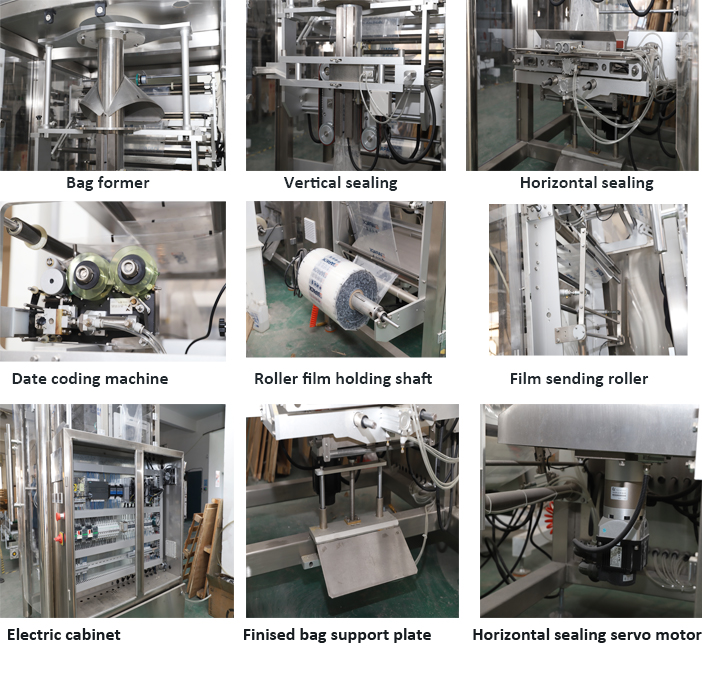 Оваа машинска единица вклучува еден комплет ZL720 машина за запечатување за полнење вертикална кеса и еден комплет ZLC-5000 машина за мерење со четири кофи, еден комплет DT3 вертикален лифт и излезна транспортерска машина. Целата машинска единица може да достигне автоматско правење кеси, мерење на производот, полнење на производот запечатување и кодирање на датумот. Широко се користи за пакување летва, детергент во прав, ориз, грав и друг грануларен производ.